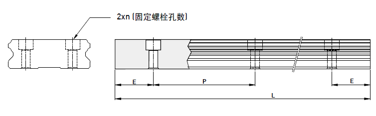 HIWIN 備有導(dǎo)軌標(biāo)準(zhǔn)長度庫存供應(yīng)客戶需求。若客戶訂購非標(biāo)準(zhǔn)長度導(dǎo)軌時(shí),端面距離E的尺寸最好不要大于1/2P,防止因E的尺寸過大導(dǎo)致導(dǎo)軌裝配后端部的不穩(wěn)定,而降低直線導(dǎo)軌的精度。