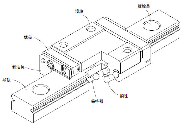 ? 滾動(dòng)循環(huán)系統(tǒng):滑塊、導(dǎo)軌、端蓋、鋼珠、保持器